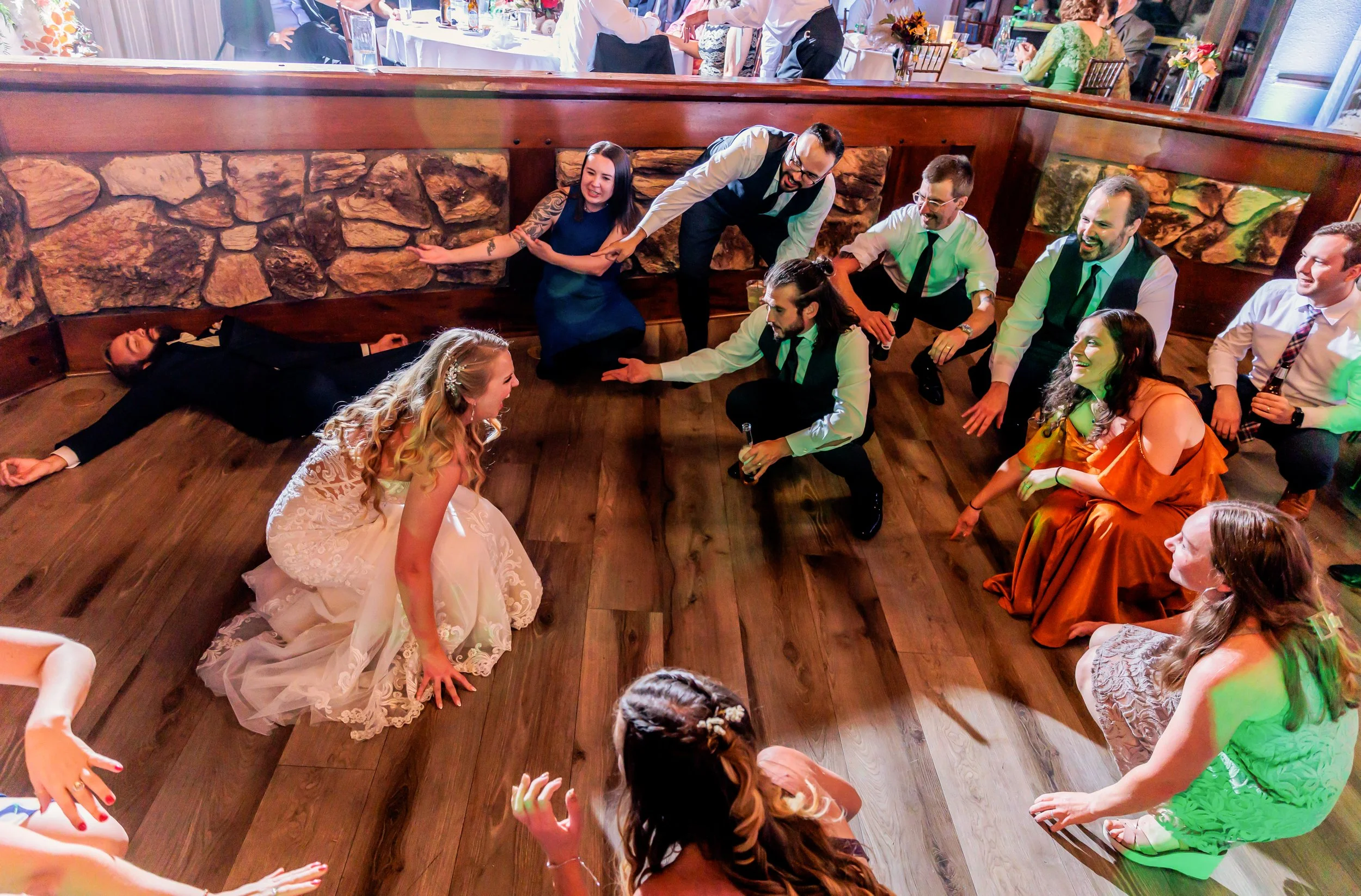 The wedding party was not messing around when it came time for the reception. They got their dancing down right at the entrance.