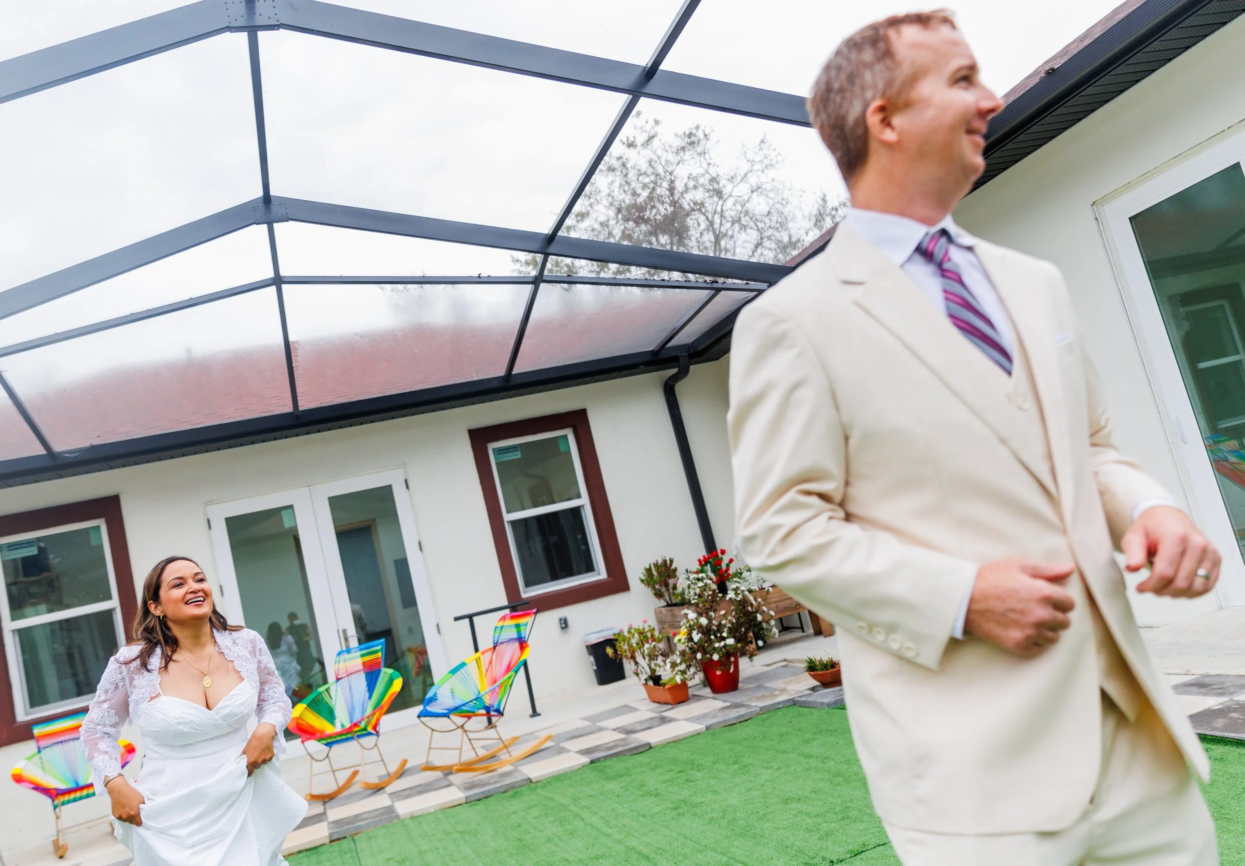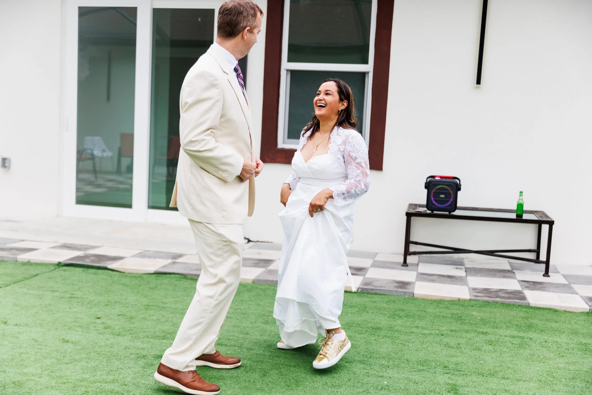Jennifer and Charlie are dancing on their enclosed lanai.